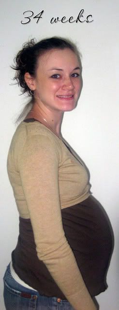 I have to say, I am going to miss my belly. For some reason I LOVE LOVE LOVE toting around a preggo belly. Being a size 6 is great too, don't get me wrong, but I feel awesome in maternity clothes with the "pregnant glow" in full force. However, I'm sure the next few weeks will slowly make me want my littlest one OUT, no longer welcome taking up space and reorganizing my internal organs! :o)